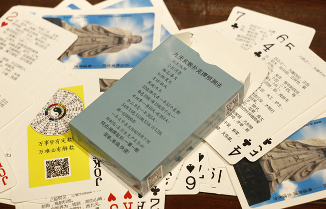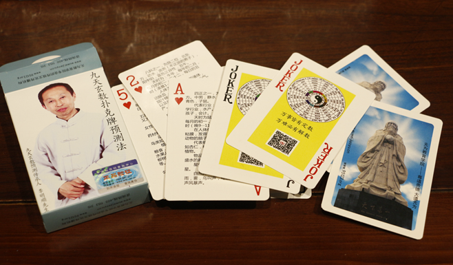 “九天玄數(shù)預測撲克牌”是在九天玄數(shù)傳承人李明順先生帶領下和無為學院教研室?guī)孜焕蠋煿餐兄瞥晒Α?ldquo;九天玄數(shù)預測撲克牌”預測法是李明順老師在原九天玄數(shù)撲克牌預測法基礎上結合自己多年的實踐經(jīng)驗以及其他易學理論進行的升級開發(fā),是適合快節(jié)奏現(xiàn)代生活的一種簡便易行的預測法。