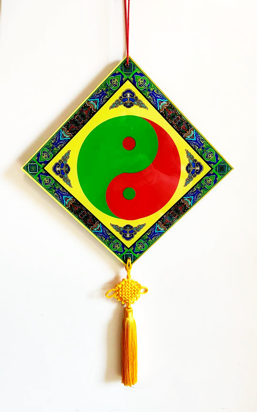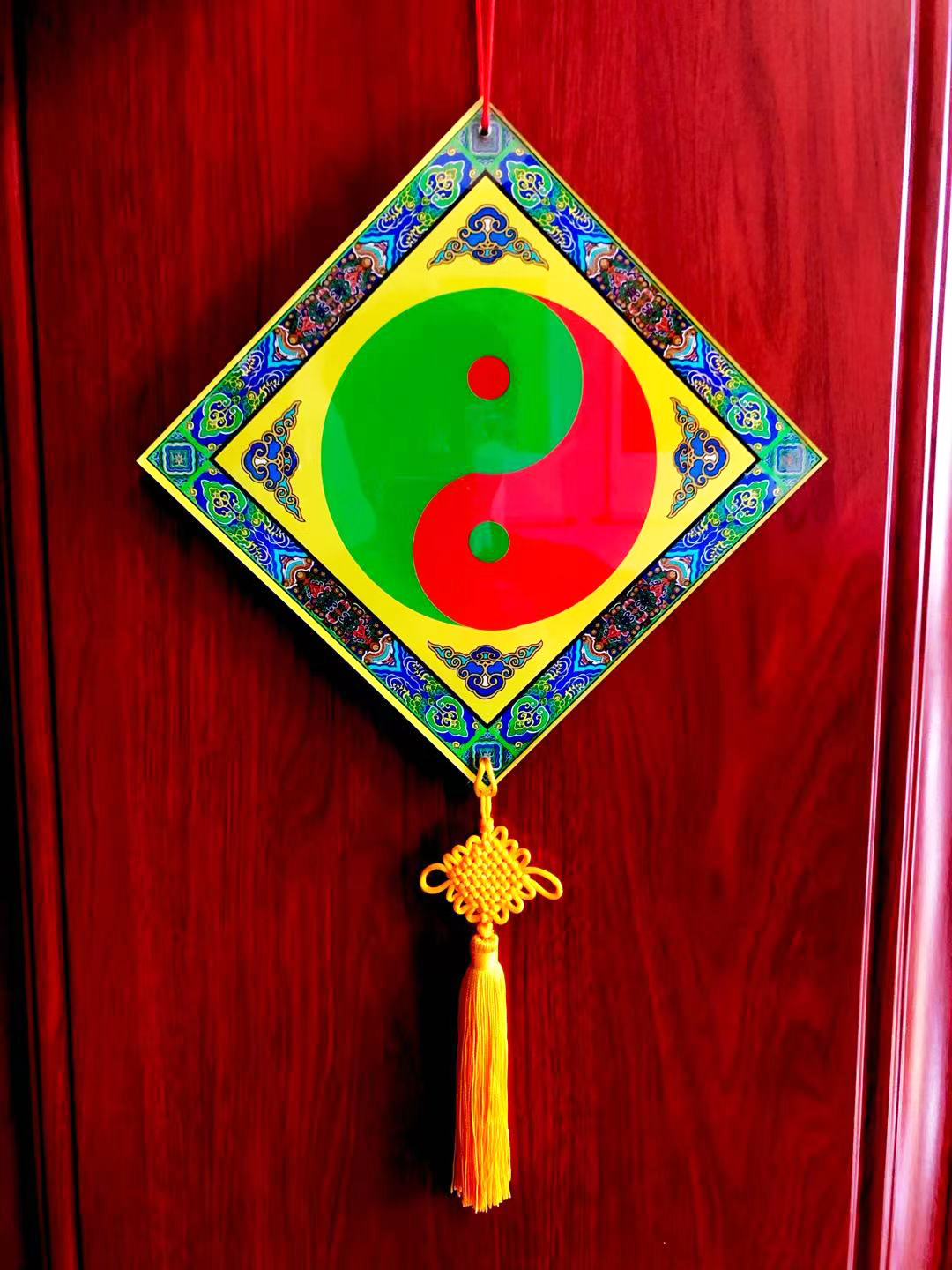 西南方有空調(diào)掛在西南方:中間太極圖木生火、火生土,直接催旺坤宮,女主人順利平安健康。黃色底盤(pán)上祥云福圖寓意吉祥,五行和諧,家和事順。