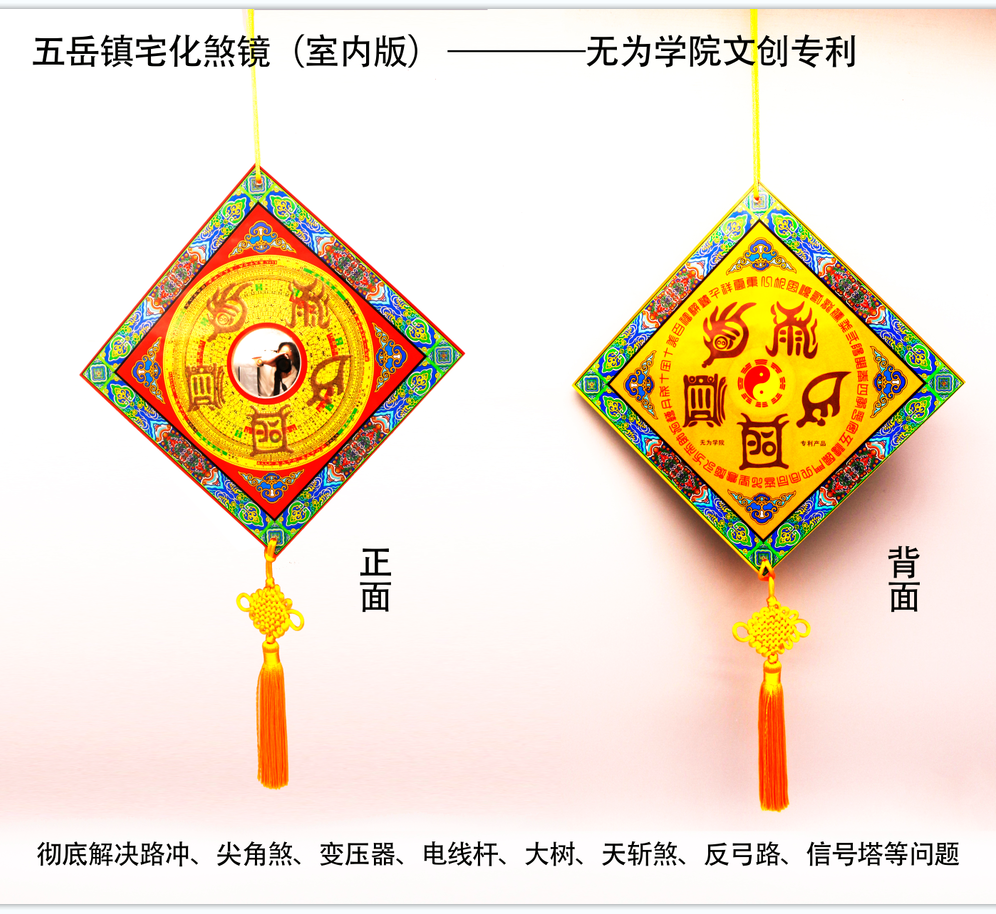 現(xiàn)在的人選樓建房,因多數(shù)都不懂風(fēng)水,又加上房屋外觀設(shè)計(jì)五花八門,所以出現(xiàn)很多“角、尖、刀、箭”,再加上其它不規(guī)則的建筑物,如電線桿、水塔、鐵塔、變壓器、道路等,造成的煞氣就更多了。如果不巧居室正對(duì)著這些煞氣的話,最好能及時(shí)化解。否則很可能出現(xiàn)輕者工作不順,身體不好,病多,重者傷殘、牢役、破財(cái)、甚至死亡的情況。這種情況下,八卦鏡就是一種常用的化煞工具!疚逶梨(zhèn)宅化煞鏡(室內(nèi)版)】是無為學(xué)院文創(chuàng)部在原來傳統(tǒng)八卦化煞鏡的基礎(chǔ)上增加了五岳真形圖和風(fēng)水羅經(jīng)圖。使得能量更大。