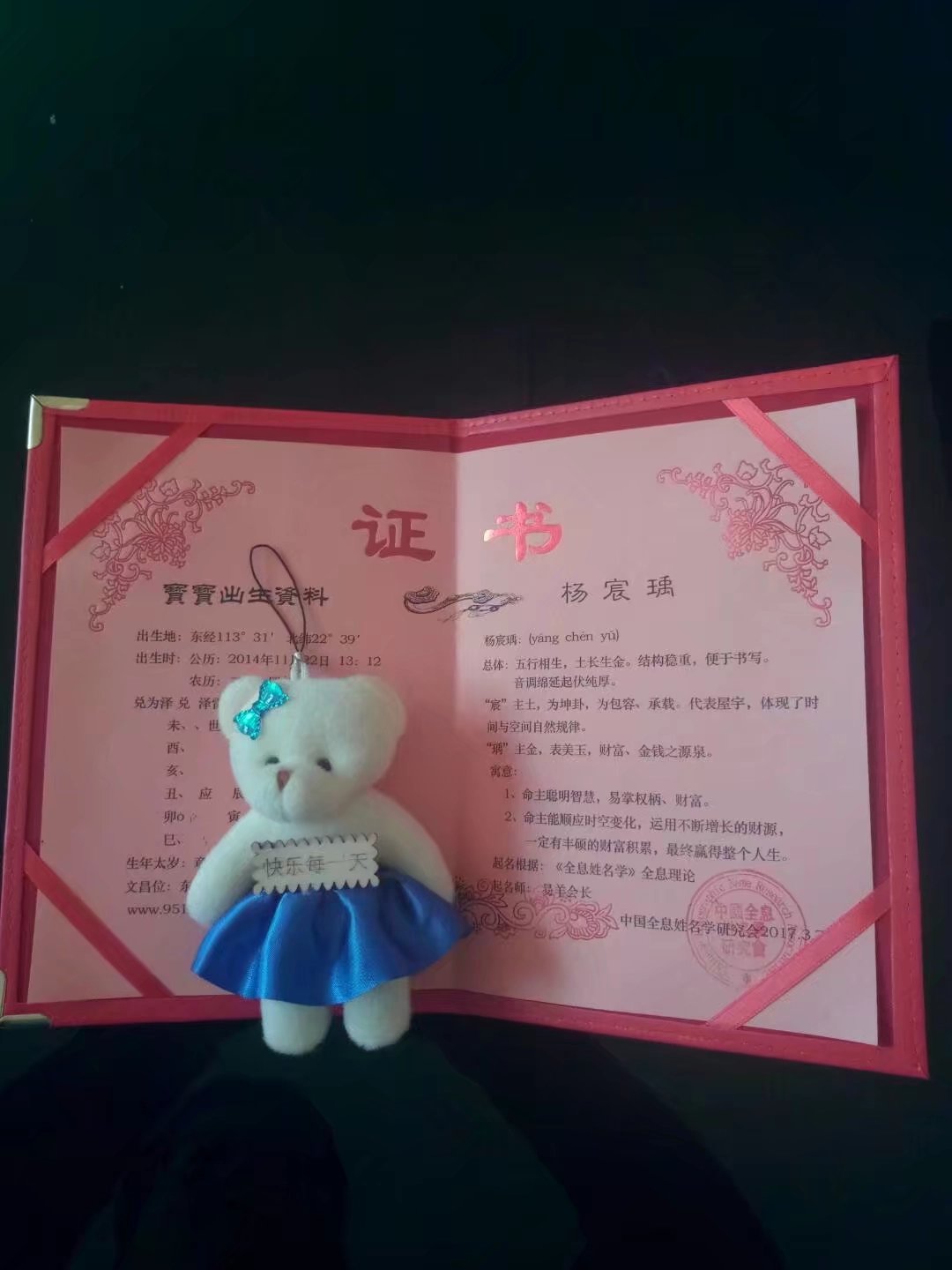 送給孩子的《起名證書》