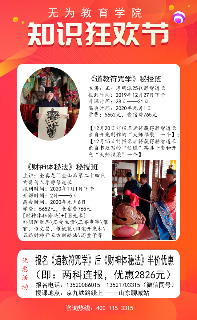 【12月20日前報名者將獲得靜智道長親自開光制作的“天師福袋”一個】;