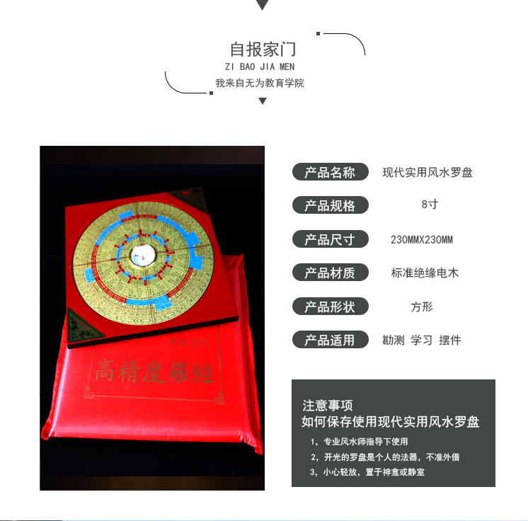 《現(xiàn)代實用風水羅盤》已經申請國家專利,目前僅供于無為學院內部學員使用和購買,定價965元,現(xiàn)在優(yōu)惠價365元,購買聯(lián)系13521703315.