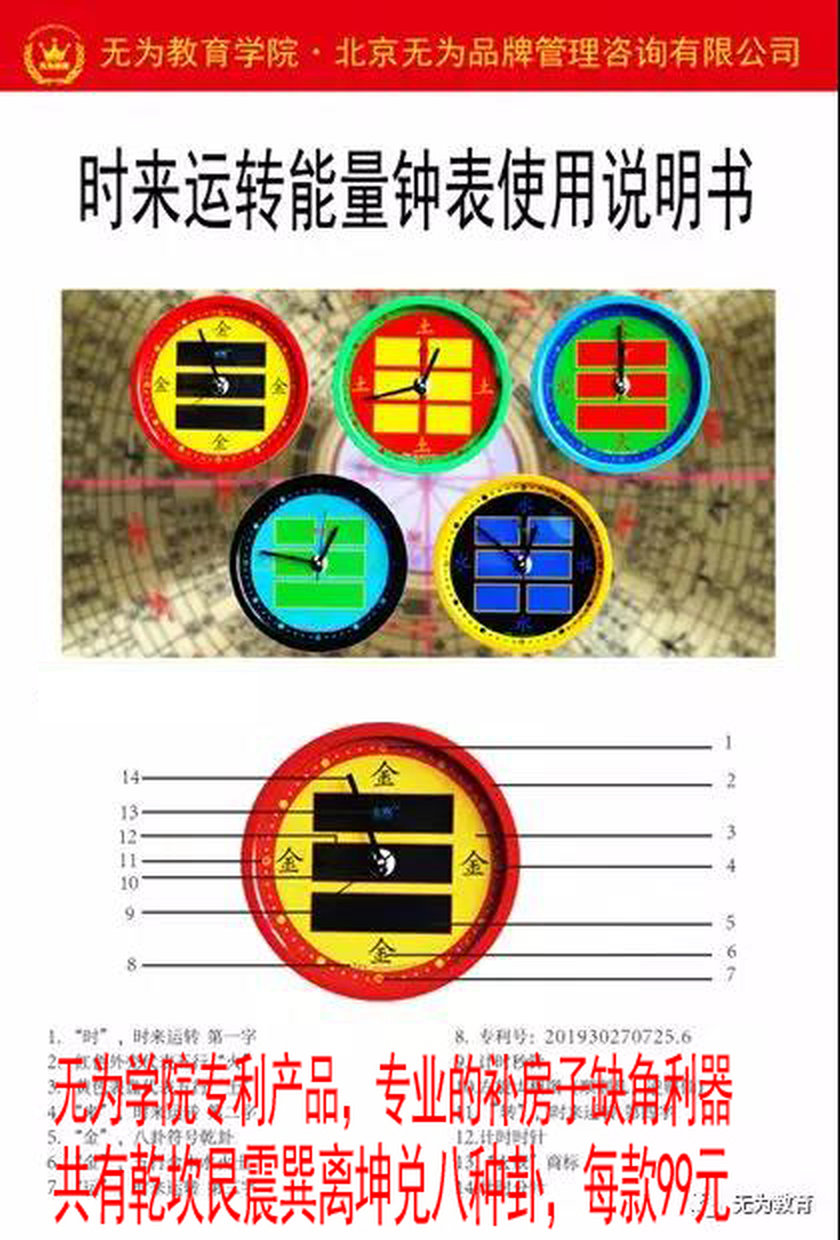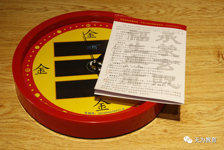在此理論基礎(chǔ)上,在李明順老師的主導下,無為教育學院教研室經(jīng)過一年多的研究策劃研發(fā)出了專利產(chǎn)品“時來運轉(zhuǎn)能量表”,該產(chǎn)品是在“五行能量轉(zhuǎn)化卦圖”的基礎(chǔ)上用電能動能催動激發(fā)卦圖五行能量,使得化煞鎮(zhèn)宅能量劇增。