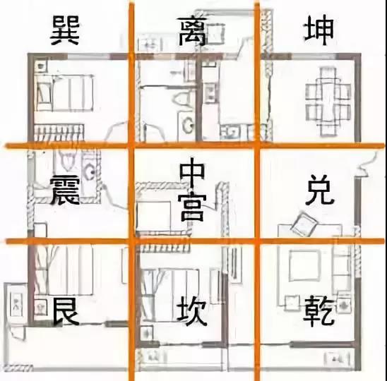 由上圖可見,九宮位的九個位置,分別代表著不同的意義,所以我們只有準確的確定了九宮位,才能準確判斷住宅風水的好壞。